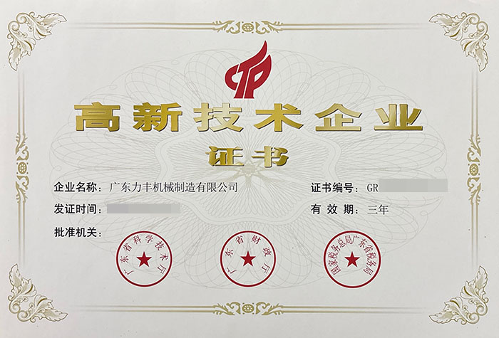 优直播机械制造有限公司于2016年成为国家高新技术企业